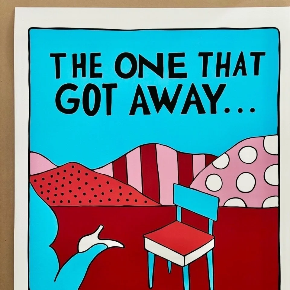 Parra’s creations span various mediums, including paintings, animations, and sculptures, exploring a spectrum from the risqué to the whimsical. "The One That Got Away" exemplifies his lighter side, balancing potential regret with humorous visual commentary.